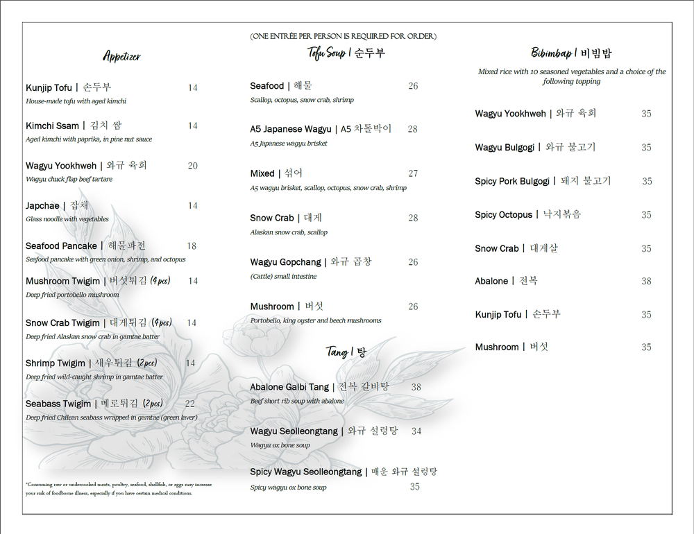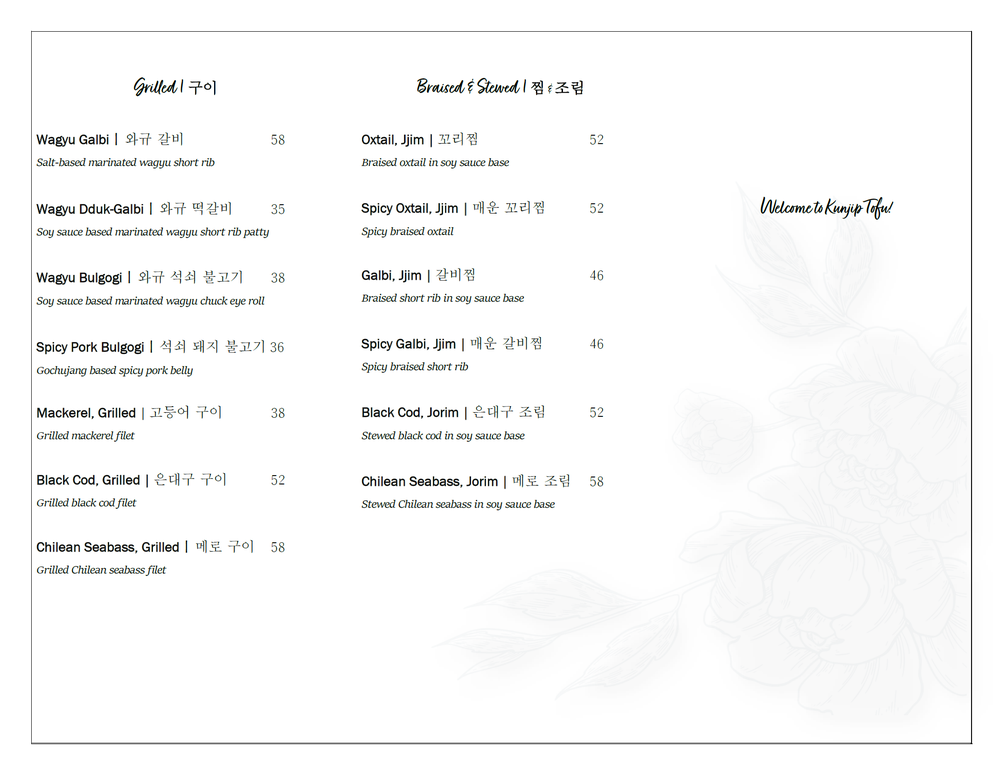 Kunjip Tofu Menu